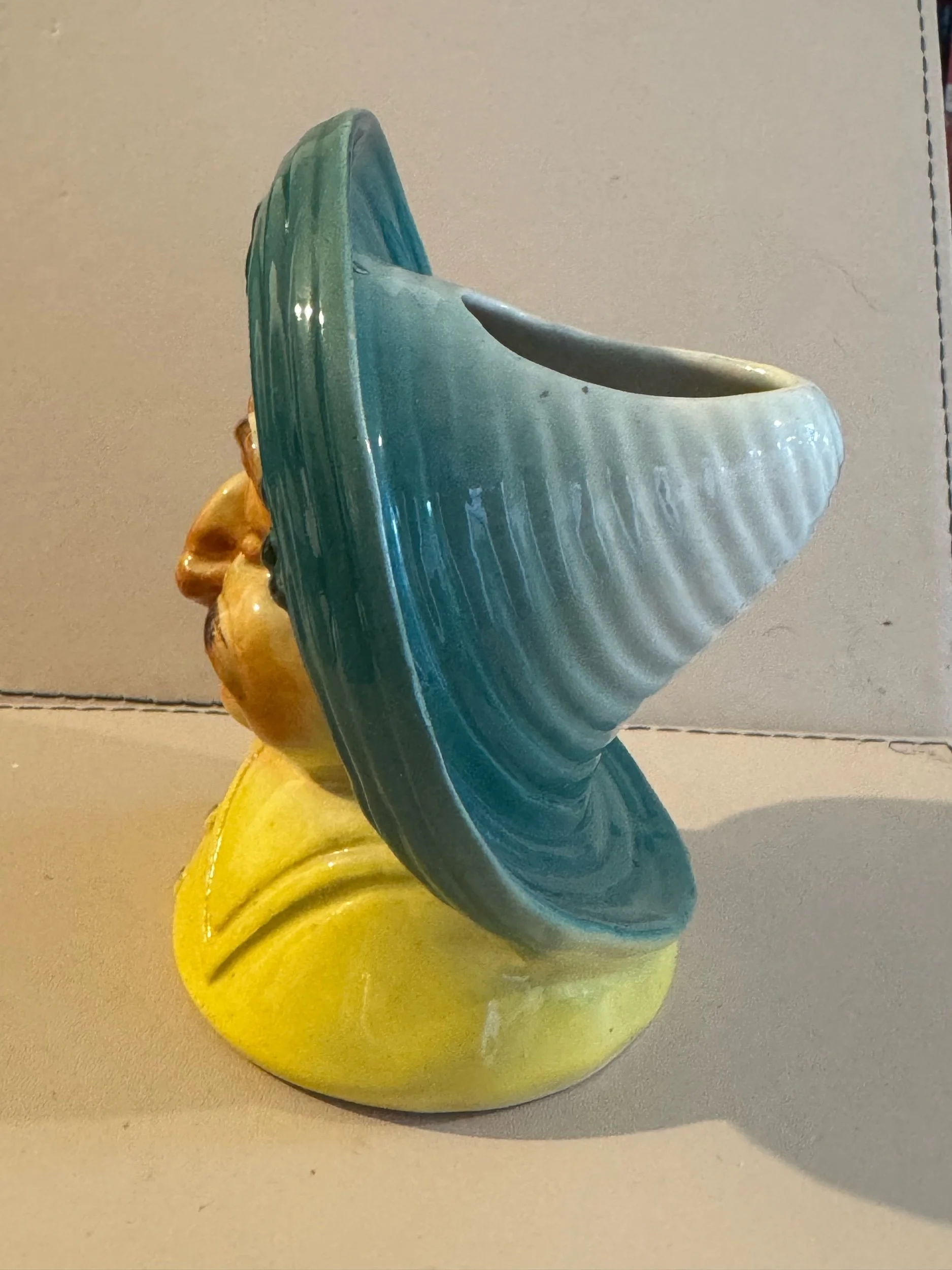 Image 1 of 5 Image 2 of 5 Image 3 of 5 Image 4 of 5 Image 5 of 5 Mid-century figural spill vase £10.00 In the Royal Copley style but source unknown. Approx 4-5” tall. Add To Cart Added! In the Royal Copley style but source unknown. Approx 4-5” tall.